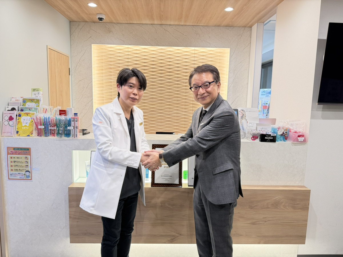 先日、マウスピース型矯正治療「インビザライン」を提供するインビザライン社の社長が、当院へ視察にお越しくださいました。今後も知識や技術の研鑽を重ね、引き続き、安心して通っていただける歯科医院を目指してまいりますので、どうぞよろしくお願いいたします。